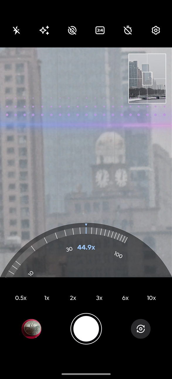 联想moto X70 Air Pro搭载了一枚5000万像素的潜望式长焦镜头,配备索尼LYT-600传感器,支持3倍光学变焦和100倍混合变焦,支持OIS光学防抖和15cm的长焦微距,在变焦倍数达到20倍以上时,会自动启用超级变焦专业版,使用AI对超长焦画面进行增强,提升画面质量,同时此时拍照也会有特殊的AI光线扫描效果。