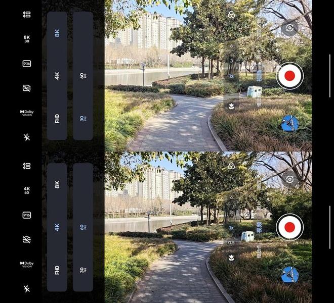 在视频拍摄界面,可以直接选择8K30P和4K60P,拍摄8K视频就是这么简单。