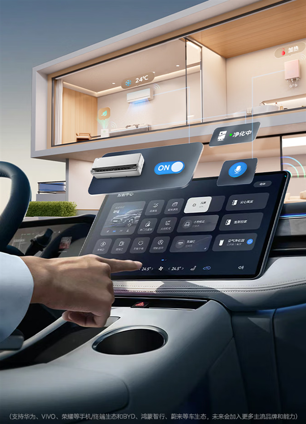 智能体验方面,美的空界M5空调支持开源鸿蒙生态互联,可实现人-车-家生态互联,在第三方入口、终端可轻松控制空调。