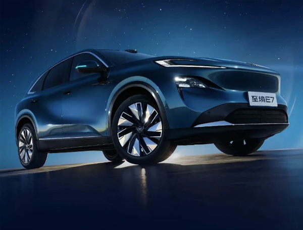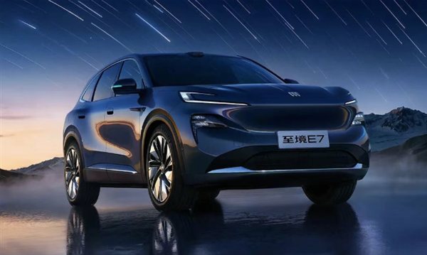 至境E7延续至境SUV概念车"展翼元素"设计理念,车身比例修长、体量饱满,轻盈凌厉线条搭配分体式灯组设计,勾勒出驭风鲨鱼前脸造型,分体式星河展翼大灯也很有辨识度。