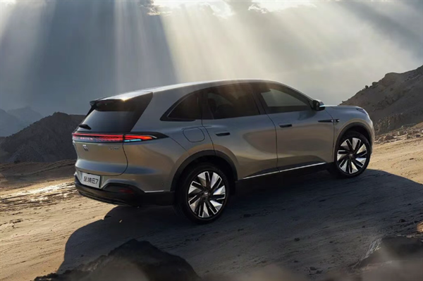 新车长宽高分别为4850/1910/1676mm,轴距2850mm,定位于中型SUV,配备20英寸展翼流影轮毂与米其林轮胎,银河展翼尾灯采用贯穿式设计,光源以参数化阵列排布,点亮后如同徐徐展开的翅膀。