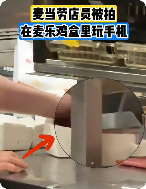 麦当劳店员玩手机致手伸进麦乐鸡盒,门店回应处理措施