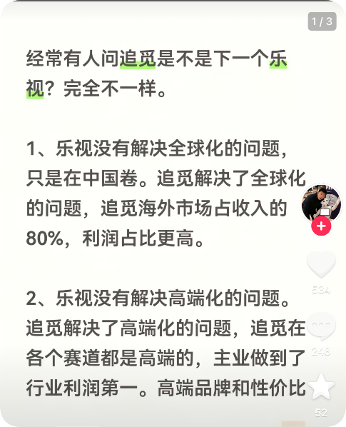 首先,俞浩强调,乐视主要在中国市场竞争,而追觅已经成功解决了全球化的问题。追觅的海外市场收入占比达到80%,利润占比更高。