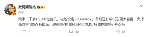 2月3日消息,博主数码闲聊站今天透露了一款天玑9500旗舰的配置,预计是REDMI K90至尊版。