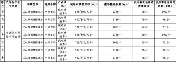 2月10日消息,今日,工信部发布了《减免车辆购置税的新能源汽车车型目录(第二十七批)》,其中披露了新一代小米SU7的续航信息。