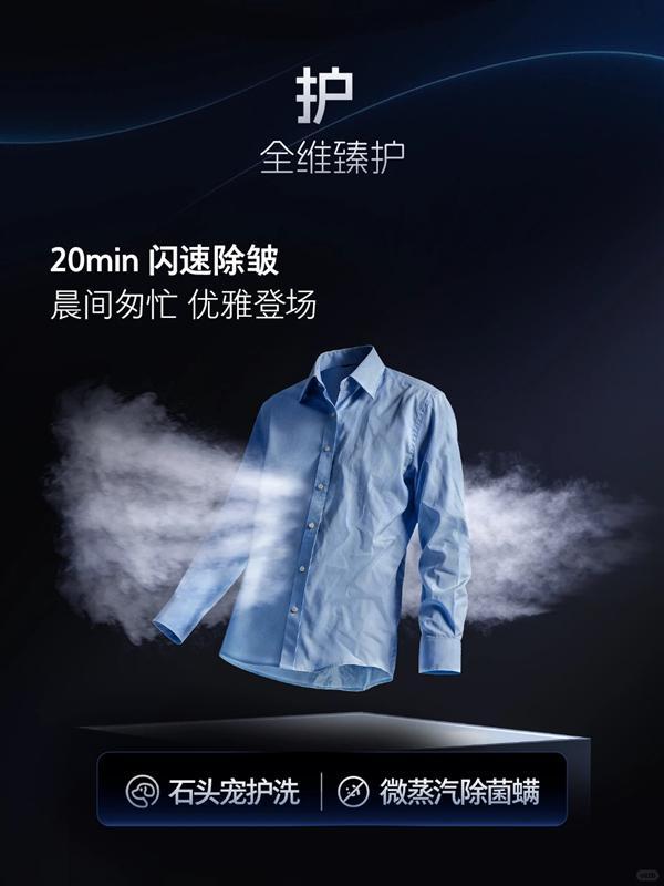 该功能无需依赖水洗或烘干程序,可独立运行。用户仅需将衣物放入,最快20分钟即可完成深度除皱、高效祛味、消除静电,并能同步实现除菌除螨。无论是匆忙的清晨需要平整的衬衫,还是聚餐后外套沾染的烟火气,Z1 Ultra都能快速让衣物恢复挺括清新状态,将专业级衣物护理融入每日生活的高频场景。
