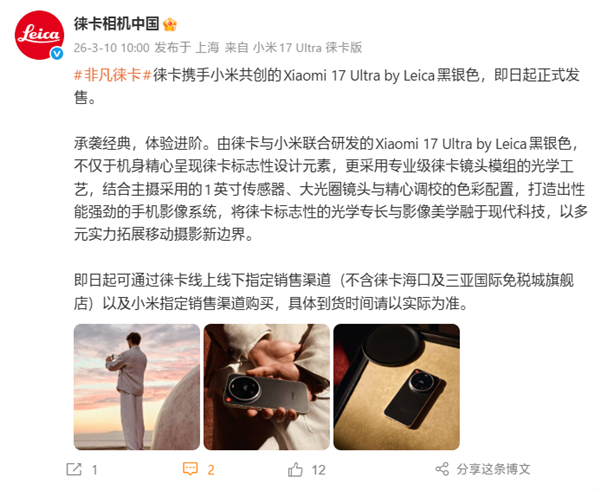 值得注意的是,徕卡官方专门发文宣布,可通过徕卡线上线下指定销售渠道购买,这也是唯一在徕卡中国门店售卖的手机。