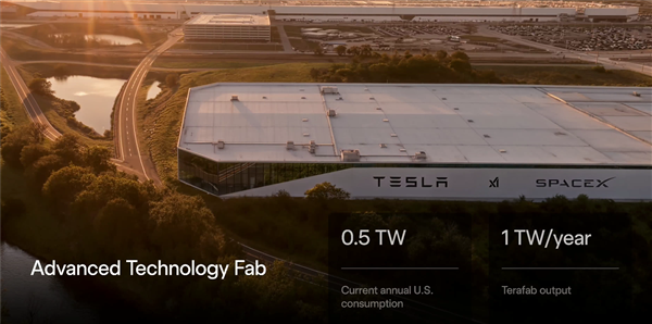 和我们熟悉的台积电、Intel晶圆厂不同,TERAFAB从名字里就透着野心,"TERA"代表太瓦(Terawatt),这座"太瓦工厂"的核心目标,是每年产出超过1太瓦的总算力,也就是1万亿瓦的计算能力,覆盖逻辑芯片、存储芯片与先进封装全链条。