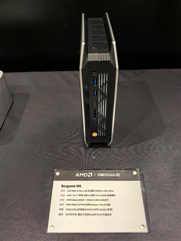 本次展示的锐龙AI Max 300系列产品包括笔记本、迷你机、一体机、游戏掌机等各种形态,清一色都是顶配锐龙AI Max 395,普遍搭配64/128GB LPDDR5X-8000统一内存。