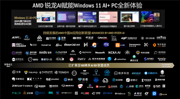 经过短短不到两年的时间,锐龙AI不但得到了Windows 11 AI+ PC的原生助力,更得到了120家合作伙伴的鼎力支持,覆盖千行百业,让AI从一个概念成为人们日常生活、工作都不可或缺的好帮手。