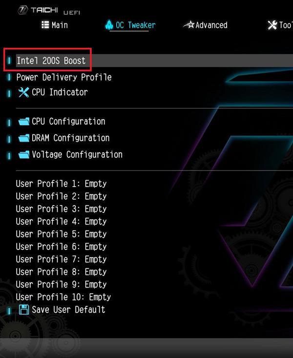实现方法倒是比较简单:升级最新BIOS,进入超频部分打开包含200S Boost字样的选项,就可以了。