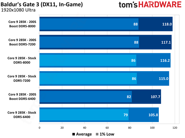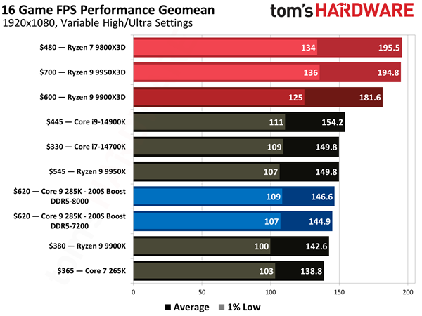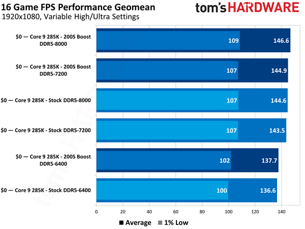 至于实际效果如何,Tom's Hardware做了详细的测试,1080p分辨率下,使用酷睿Ultra 9 285K、RTX 5090,16款游戏平均提升7.5%。