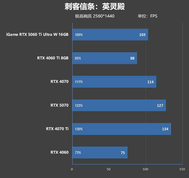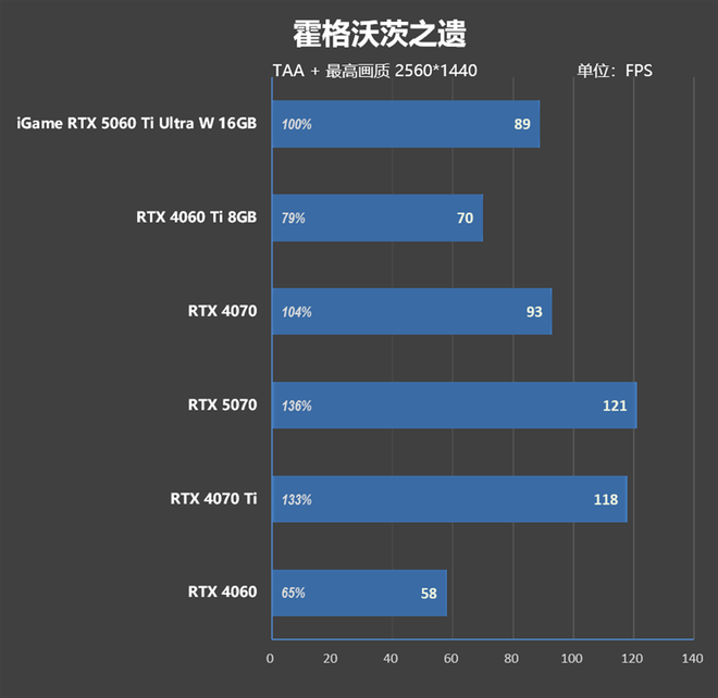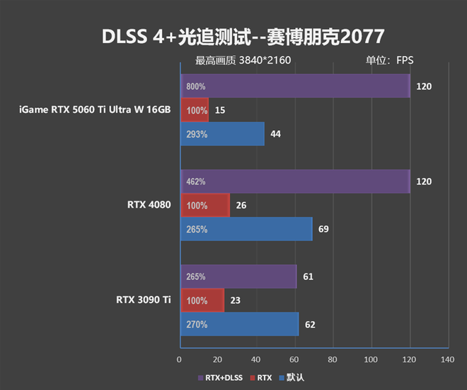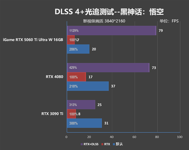 但考虑到新一代的RTX 50系列显卡支持DLSS 4,有了"多帧生成"的加持,iGame RTX 5060 Ti Ultra W 16GB的帧率表现已经达到了RTX 4080的水准。