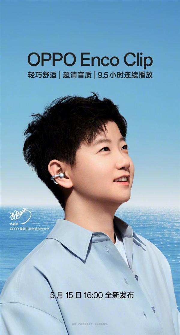 孙颖莎同款 OPPO首款开放式耳机Enco Clip官宣:5月15日发布