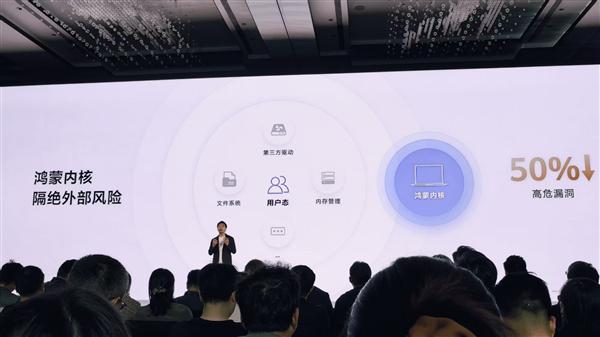 根据介绍,鸿蒙电脑所采用的鸿蒙内核,可有效隔绝外部风险,高危漏洞直接减少50%。