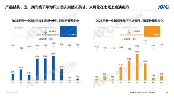 数据显示,大屏化趋势愈发明显,线下平均尺寸首次突破70英寸,达到了71.4英寸。
