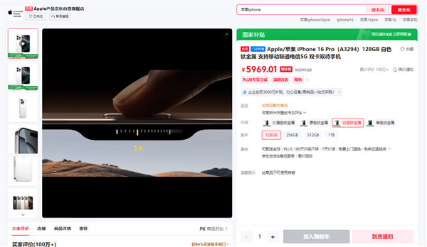 降价+国补,iPhone 16 Pro毫无悬念成为京东618手机销量王,128GB版本补贴后售价5499元,如此空前的降价力度引发国人抢购,部分配色显示无货。