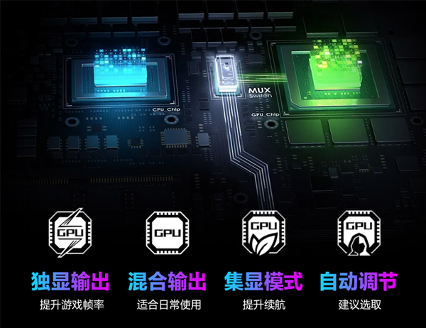 当然还有经典的双显三模热切换技术,无需重启即可在独显输出、集显输出、混合输出、自动调节之间按需切换。