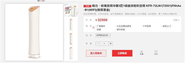 格力官网显示,目前玫瑰空调柜机售价32999元,该空调首创仿生玫瑰风口造型,19朵玫瑰动态浮现,底座支持旋转并自带悬浮光效。