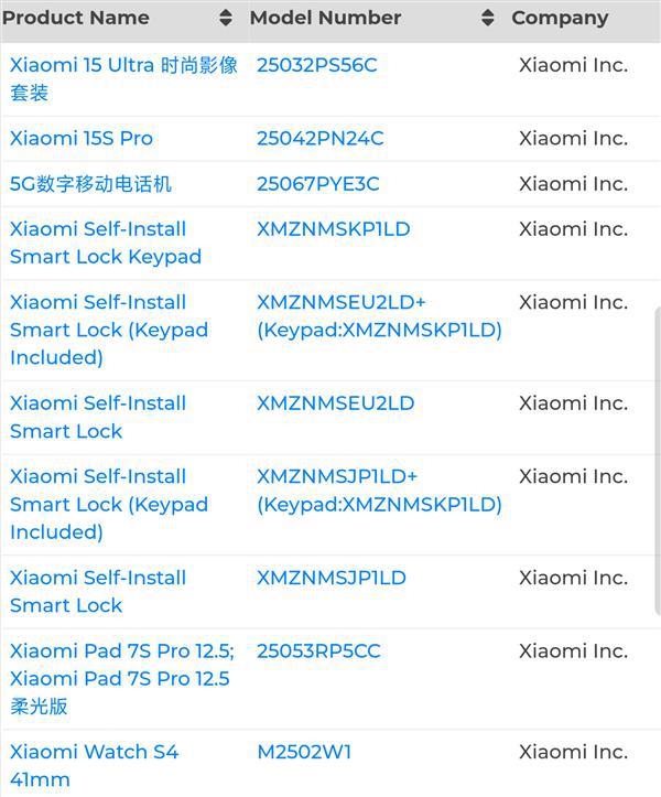 6月2日消息,据博主数码闲聊站透露,小米有多款新品获得认证,包括小米平板7S Pro 12.5英寸/柔光版、小米15 Ultra时尚影像套装、小米手表S4 41mm。