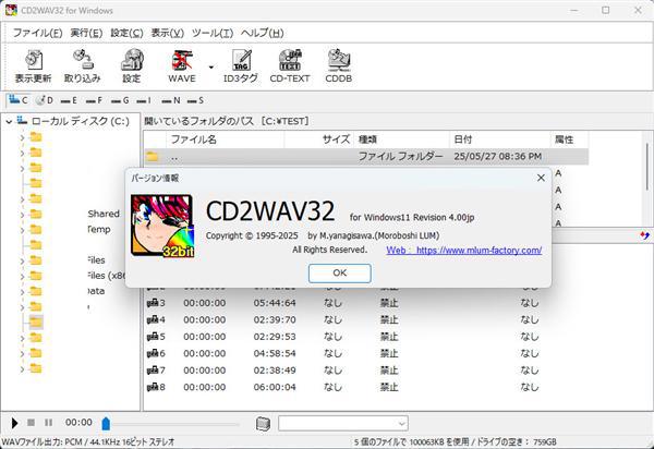 6月5日消息,一款古老的CD抓轨软件CD2WAV32在16年后终于迎来了更新,软件开发者Moroboshi Ramu近日发布了4.00jp版本,使其能够完全兼容Windows 11 24H2。