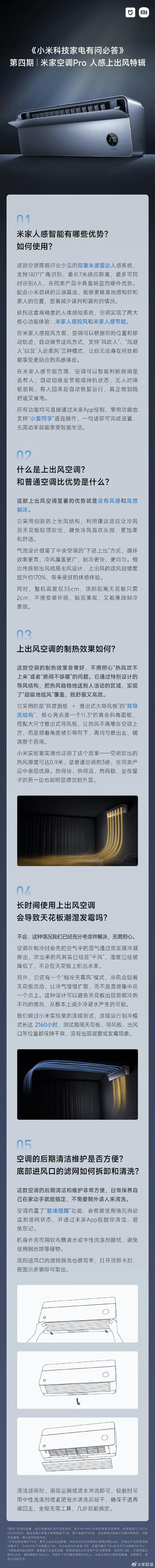 6月6日消息,日前,小米集团大家电部总经理单联瑜发布米家空调Pro人感上出风特辑,解答了上出风空调和普通空调相比有哪些优势、人感智能有哪些优势等问题。