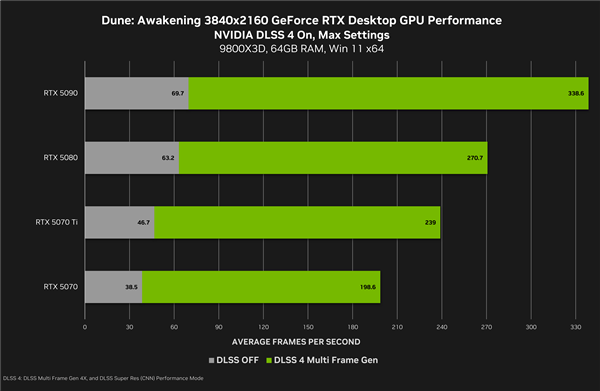NVIDIA DLSS4助力:《沙丘:觉醒》性能提升4.9倍!RTX 5070也能4K近200帧
