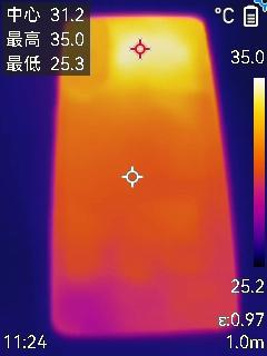 游戏过后,机身背面最高温度为35摄氏度,位于镜头Deco的右侧部位。