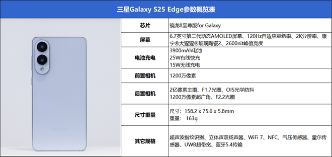 三星Galaxy S25 Edge凭借轻薄设计成为当下唯一一款仅重163g的轻旗舰机型。